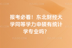 东北财经大学同等学力申硕有统计学专业 。除此之外,还设有保险学、思想政治教育等专业。授课方式为网络班,学习灵活,学制2年,学费3.5万元,毕业后可获学位证与结业证。……