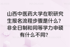 山西中医药大学在职研究生报名流程步骤包括非全日制研究生和同等学力申硕两种方式。非全日制研究生需参加全国统考,9 月预报名、10 月正式报名;同等学力申硕采用申请审核制,全年可报名。学校开设中医学、中药学等专业,学费 2.4 万元,学制 3 年,适合不同需求的在职人士。……