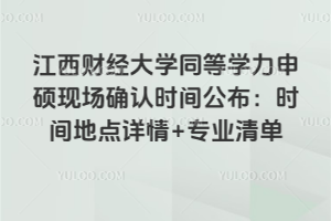 江西财经大学 2026 年同等学力申硕现场确认分两场:1 月 10 日 09:00-11:00 在南昌,1 月 11 日 14:00-16:00 在深圳,覆盖统计学、法学等十余类专业。学位证满三年的学员需参与江西财经大学同等学力申硕现场确认,错过将无法参加 2026 年 5 月的申硕统考。……