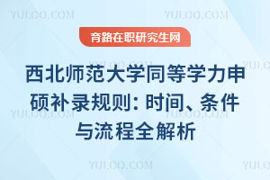 西北师范大学同等学力申硕补录规则:报考条件与首轮一致(课程班需大专及以上,申硕需本科有学位满3年),流程包括网上报名、材料提交、审核及可能的考试,录取后与首轮学员同等待遇,需注意名额少、审核严的特点。……
