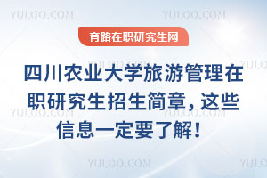 四川农业大学旅游管理在职研究生招生简章:面向多类文旅机构培养复合型人才。课程班入学门槛低,大专及以上学历即可;申硕需本科毕业满3年且有学位。学制2年课程学习,后续申硕及论文答辩3-5年内完成,学费2.4-2.98万元,上课采用“周末面授+线上补充”。课程分三大模块,申硕通过后获国家认可学位证。……