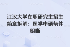 江汉大学在职研究生同等学力申硕医学(专硕)招生简章涵盖报考条件、课程设置、申硕流程等。要求本科有医学相关学位,课程线上学习,通过统考、论文答辩等可获硕士学位,适合有提升需求的在职医务工作者。……