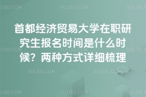 首都经济贸易大学在职研究生报名时间分两类:非全日制研究生与全国硕士统考同步,10月网报、11月确认;同等学力申硕可随时咨询报名,申硕考试每年3月网报、5月考试,满足条件即可报考,助力在职提升。……