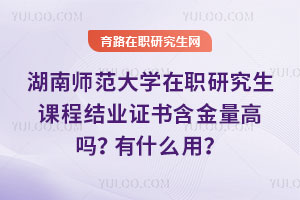 湖南师范大学在职研究生课程结业证书含金量因学校 “双一流” 背景及与全日制课程一致的质量,在教育等相关领域认可度高。其用途广泛,可作职场晋升能力背书,如校内竞聘、机构任职;能当继续教育学分凭证;成为职业转型知识跳板;是申硕必备前提;还可作为人脉资源连接纽带。适合在职教师、教育从业者、职业转型者及学历提升规划者。……