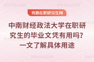 中南财经政法大学在职研究生的毕业文凭有用吗?毕业文凭有课程结业证书和硕士学位证书。结业证书是参与课程学习证明,受教育行业及相关企业认可。硕士学位证书与全日制的一致,经学位网认证,国家承认。在工作中,有助于职场晋升、跳槽、薪资提升及继续教育加分;学历拓展方面,可用于考公、读博、落户;还能更新知识体系,积累行业人脉。适合金融、法律、企业管理等行业从业者提升自我。……